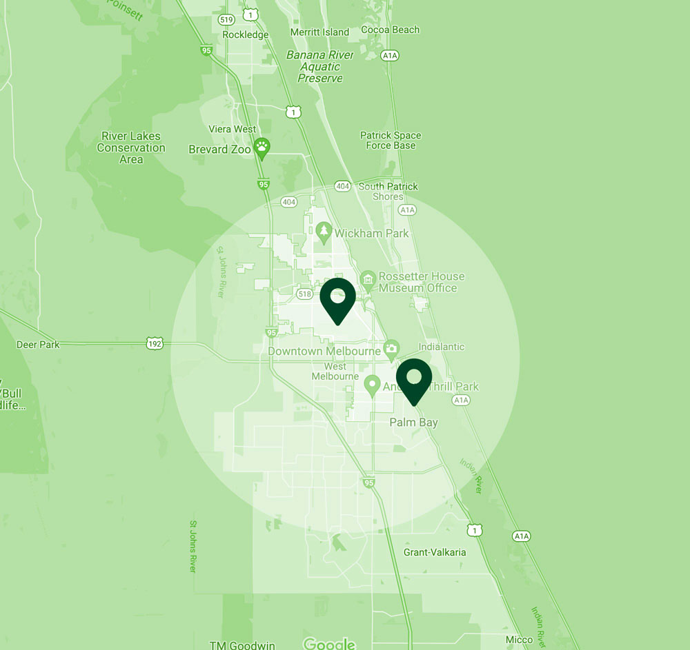 We serve clients throughout Melbourne, West Melbourne, Melbourne Beach, Satellite Beach, Palm Bay, Vierra, and surrounding areas.